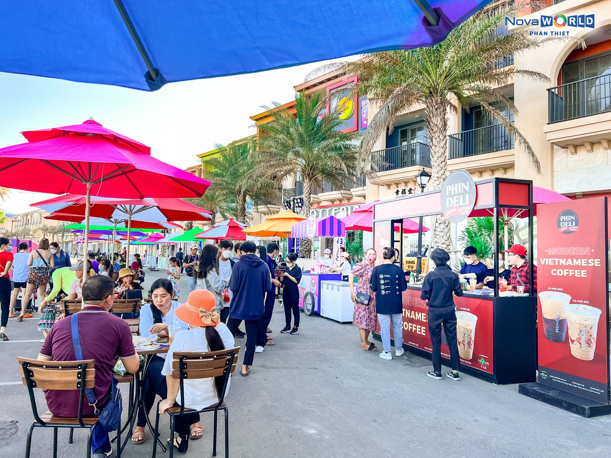 Festival Street là góc phố được thiết kế đậm tính nghệ thuât - nơi trưng bày các sản vật của vùng đất Phan Thiết và chuỗi gian hàng đến từ các thương hiệu trong hệ sinh thái NovaGroup như: Phin Deli, Xing Futang, Lotteria, Nova Market, Xuân Thu, Citispa… Đây chính là cơ hội để “tín đồ” mua sắm thỏa sức trải nghiệm tại phố thương mại Festival Street.
