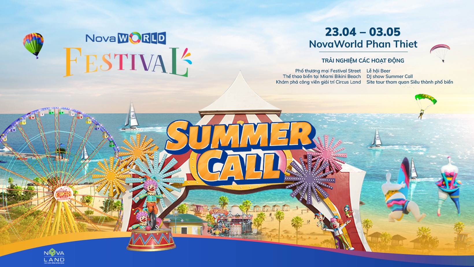Những hoạt động sẽ diễn ra tại Novaworld bao gồm xiếc tung hứng, xiếc xe đạp, chú hề bong bóng, cà kheo,...
