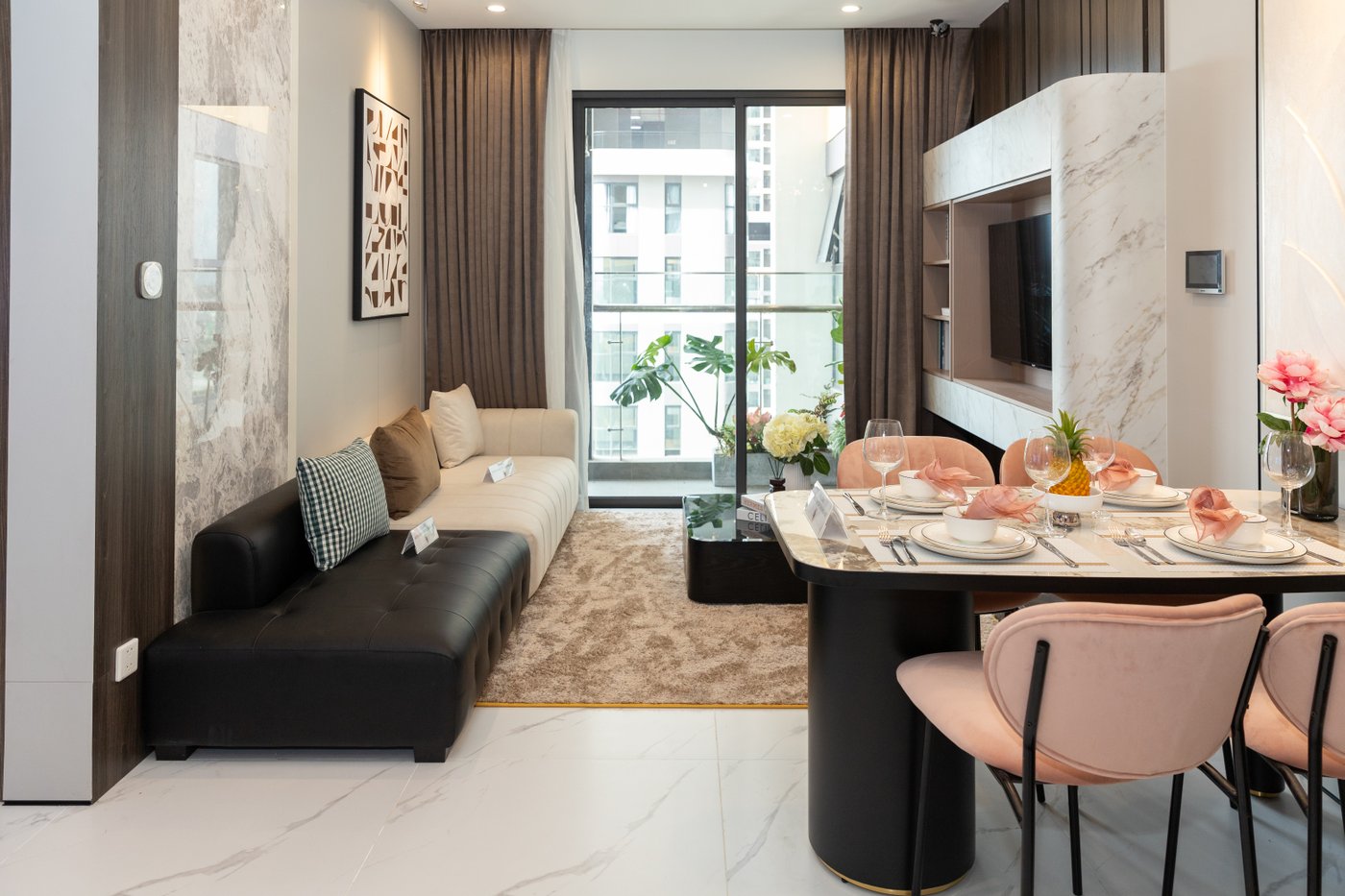 The Opus One mang phong cách resort độc đáo với thiết kế cảnh quan xanh mát và mặt nước. Mỗi căn hộ được trang bị nội thất liền tường cao cấp từ các thương hiệu quốc tế, đảm bảo sự sang trọng và tiện nghi.
